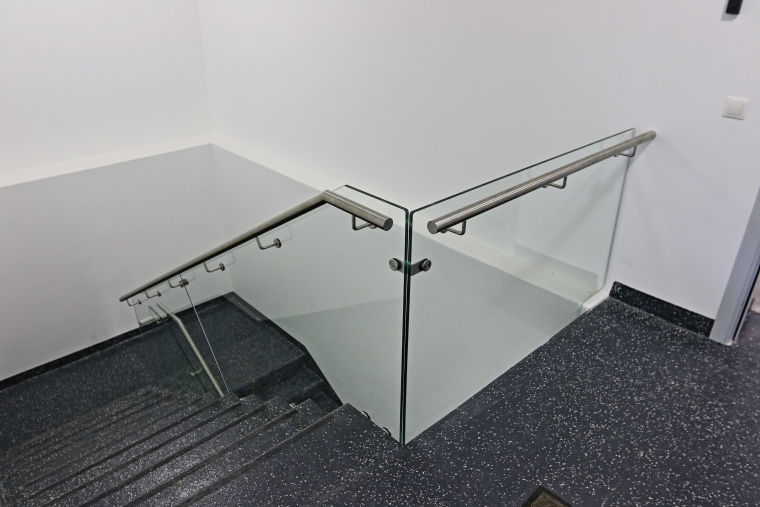 6 FotoToget uzstādītās stikla margas kāpņu telpā.