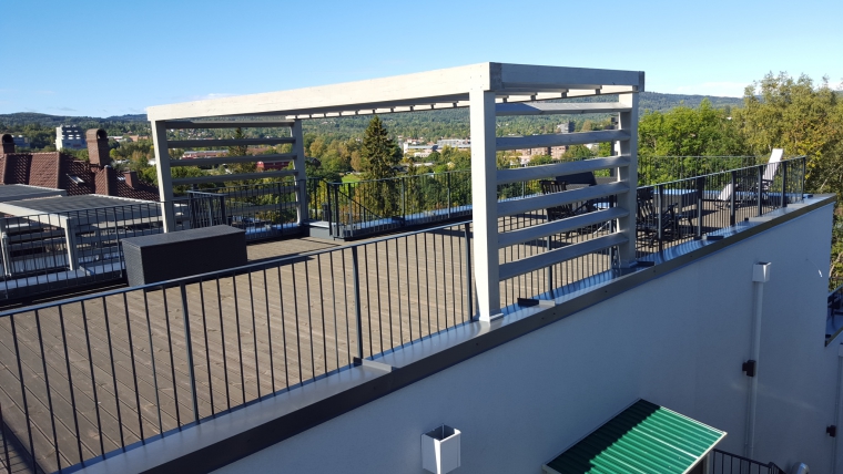 7 FotoПроизводства оцинкованных ToGet окрашенные металлические перила с деревянными элементами, живущих дом Modellvillan, Швеция.